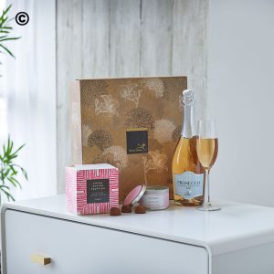 Sparkling Rose Prosecco, Chocolates and Candle in a presentation box